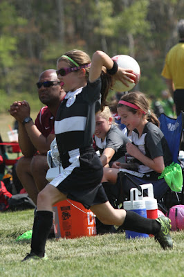 Emily had a great tournament at the Cape. Could she have played a little bit better? Of course. But she did really well for the conditions - it was brutally hot and the sun was just beating down on them during all four games. The first two games were very physical, which is always a bit harder on someone small like Emily. In the second game, she was blasted twice (both times, a penalty was called) and actually got up very slowly one time, holding her shoulder - lump in my throat, as Emily never gets up slowly. After a quick check of her shoulder mobility, she went back in the game and proceeded to score two goals - one of which might be the prettiest goal I've seen at this age level, as her back was to the goal as she started her shot. She's no Messi, and I certainly don't expect to ever seen anything like it again, but it was a great one. The team ended up going 1-2-1 and Emily scored four goals over four games. They played like a team for the first time in a long time, but it was bittersweet for Emily. She is moving to a new club next year, so while her teammates go through tryouts this week, she already knows that she has a new group of teammates. We will miss her friends (and their parents) on the team, but we are hoping for a better experience for Emily.