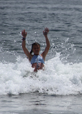 For the first time - maybe ever - we could not get Emily out of the water. It was just warm enough that she couldn't get enough, and really enjoyed body surfing in the waves.